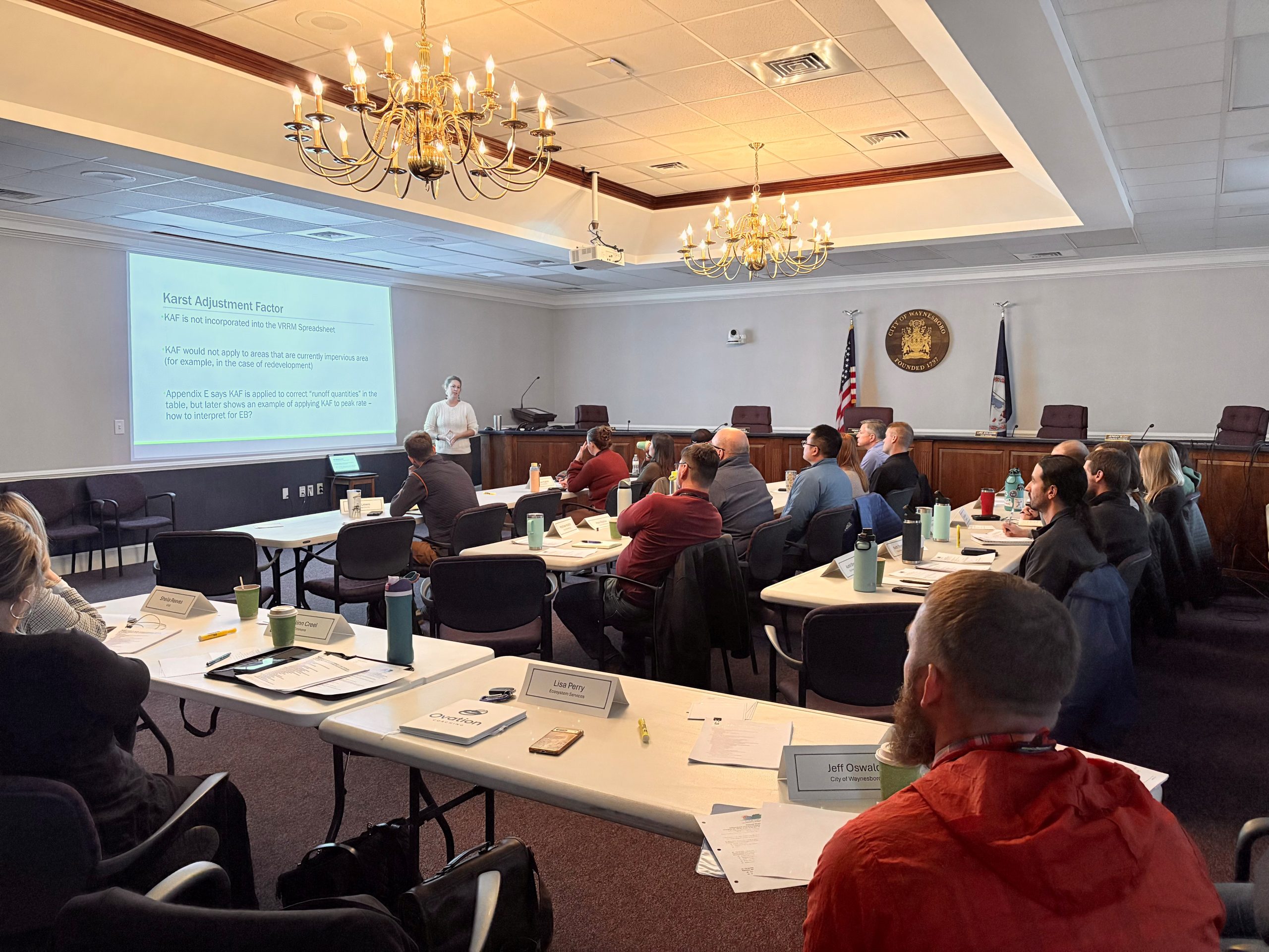 The CSPDC hosted an Urban Karst and Stormwater Workshop on October 28th in Waynesboro City Council Chambers, bringing together approximately 35 stormwater management and public works professionals from across the region. The full-day event explored challenges and best practices for planning and implementing stormwater projects on karst, a geological feature that can complicate conventional approaches.