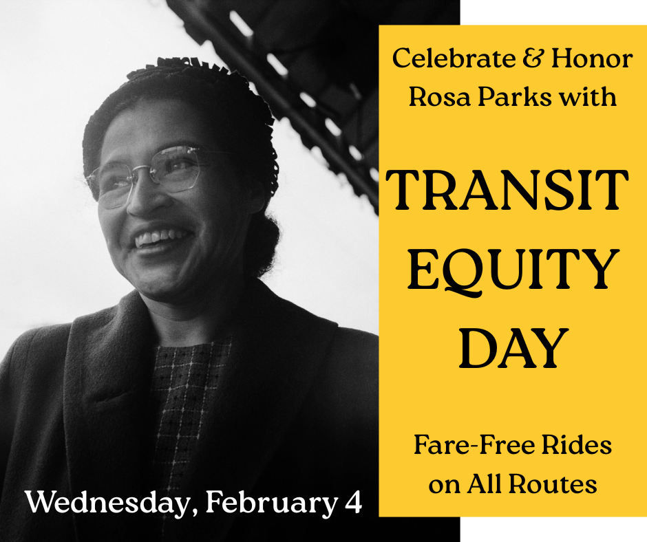 BRITE Bus celebrated Transit Equity Day on February 4 with fare-free rides on all BRITE routes. Transit Equity Day pays homage to Civil Rights icon Rosa Parks and her courageous acts in fighting for the right to equitable transportation. This day of action serves as a reminder of the importance of removing barriers to accessible transportation.