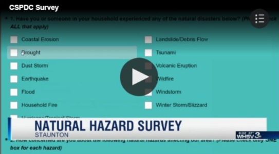 The CSPDC, along with the Regional All Hazards Mitigation Plan Committee, have launched an online survey of the region’s residents to gauge their perceptions about vulnerability to natural hazards. The survey will also gather input about their willingness to implement preparedness and mitigation measures to protect their families, homes, and businesses. The responses will be incorporated into the Central Shenandoah Valley Wildfire Protection Plan and the Central Shenandoah Valley All Hazards Mitigation Plan. With all of the natural disasters and human-induced disasters across the country this past year, the survey will be an important way that residents can help first responders understand the hazard readiness of residents in the region. Please share the survey link with your friends, colleagues, and neighbors here in the Central Shenandoah Valley.